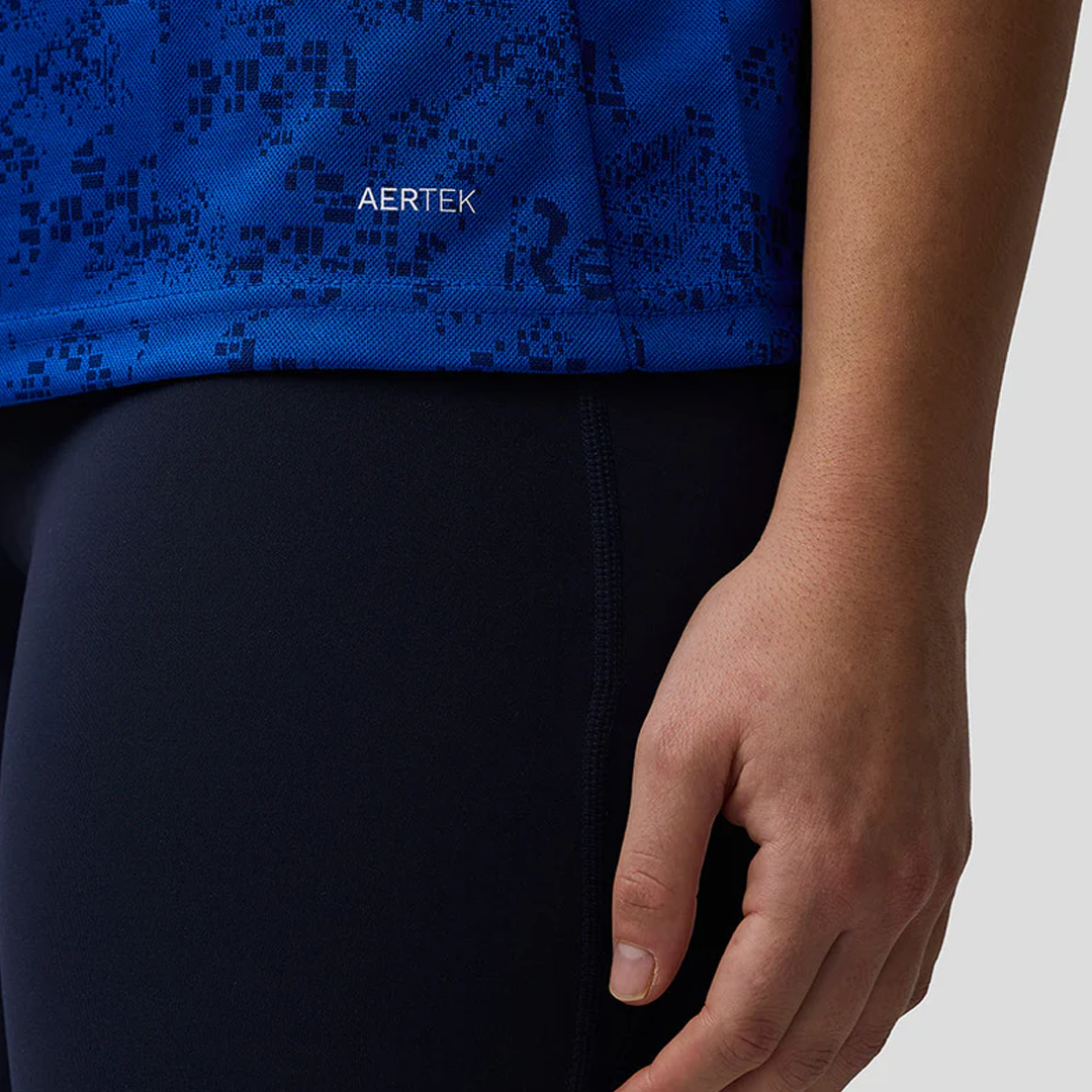 Tecnología AerTek para absorber la humedad con marca denominativa en el dobladillo inferior izquierdo delantero