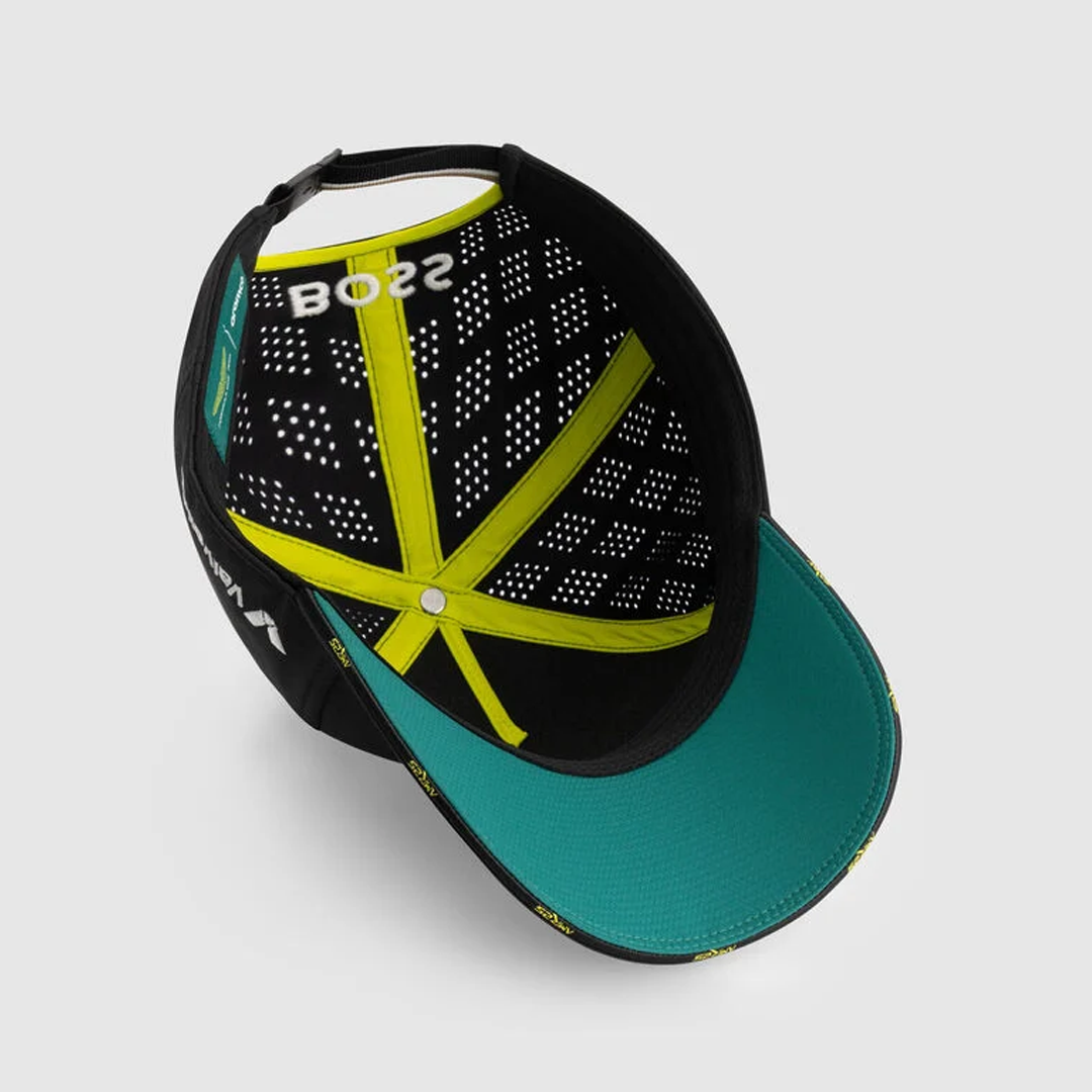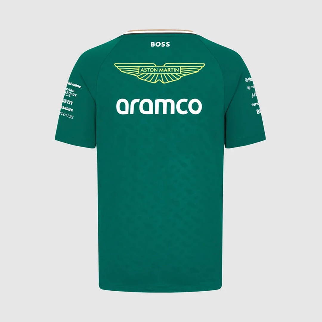 - Logotipo del equipo Aston Martin F1 en el pecho y la espalda.