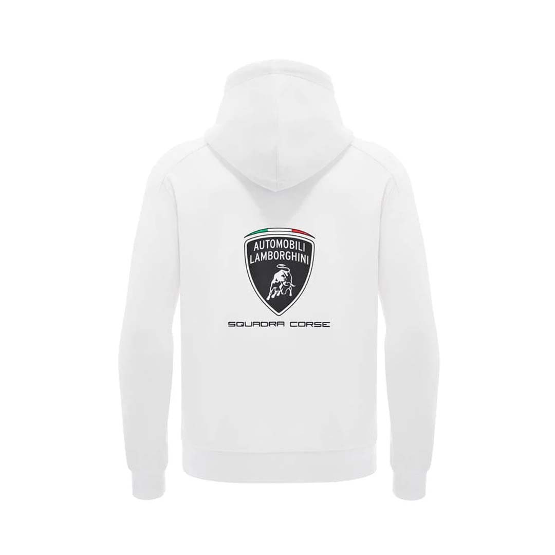 El tejido Scuba light y el trabajo Jacquard ofrecen un excelente confort para acompañarte en cualquier ocasión. Presenta una práctica cremallera central completa y dos cómodos bolsillos laterales con cremallera. El cuello alto está diseñado para protegerte del frío. El logo de Automobili Lamborghini Squadra Corse está aplicado en el frente izquierdo. Adicionalmente embellecido por los colores y los patrocinadores oficiales del Equipo de Carreras.