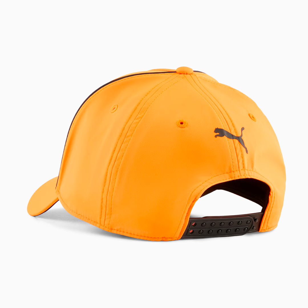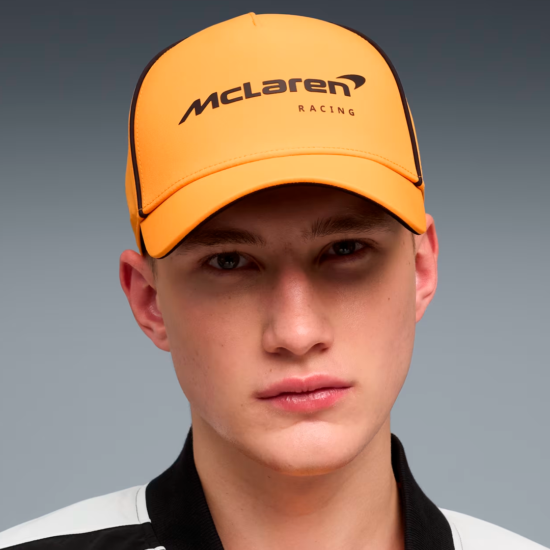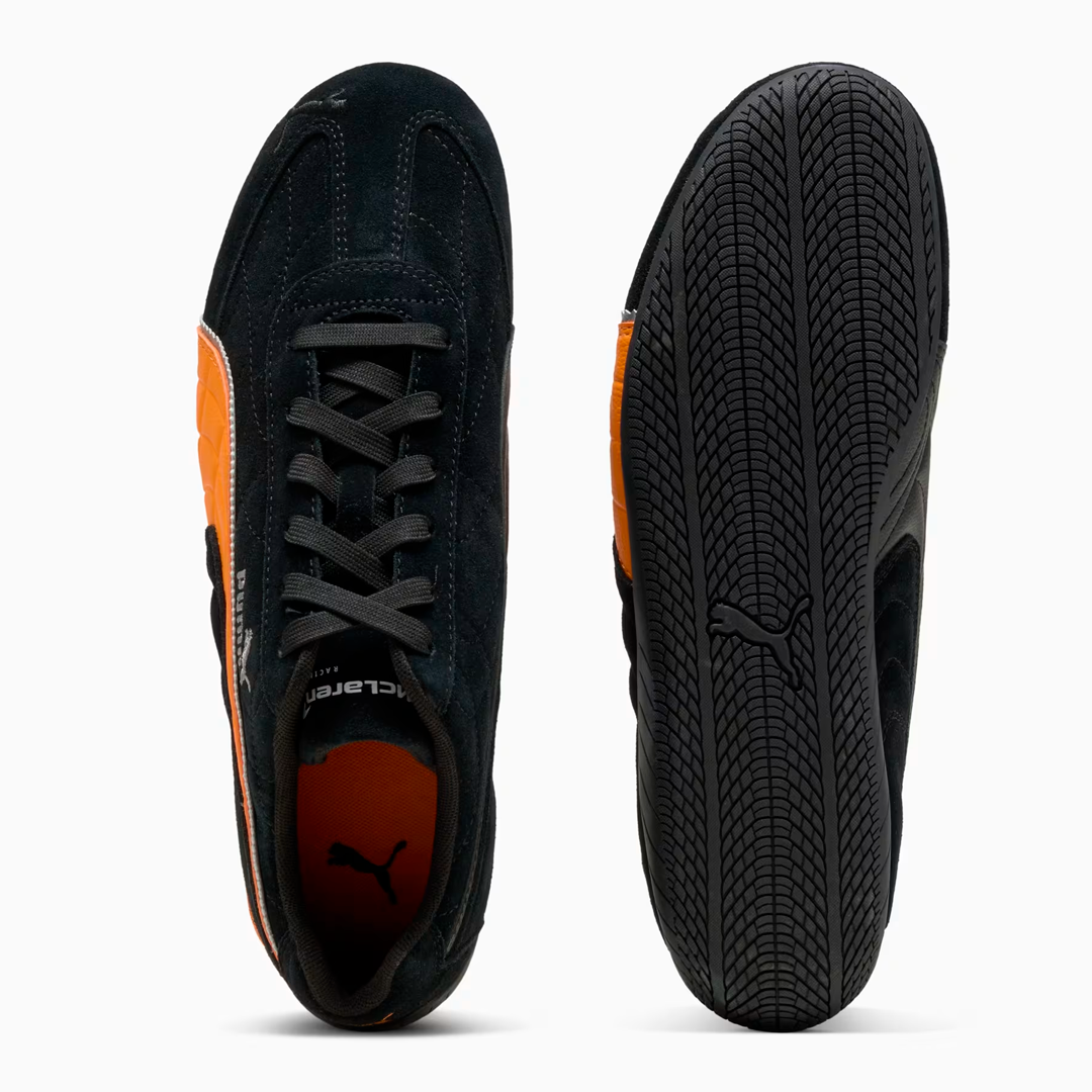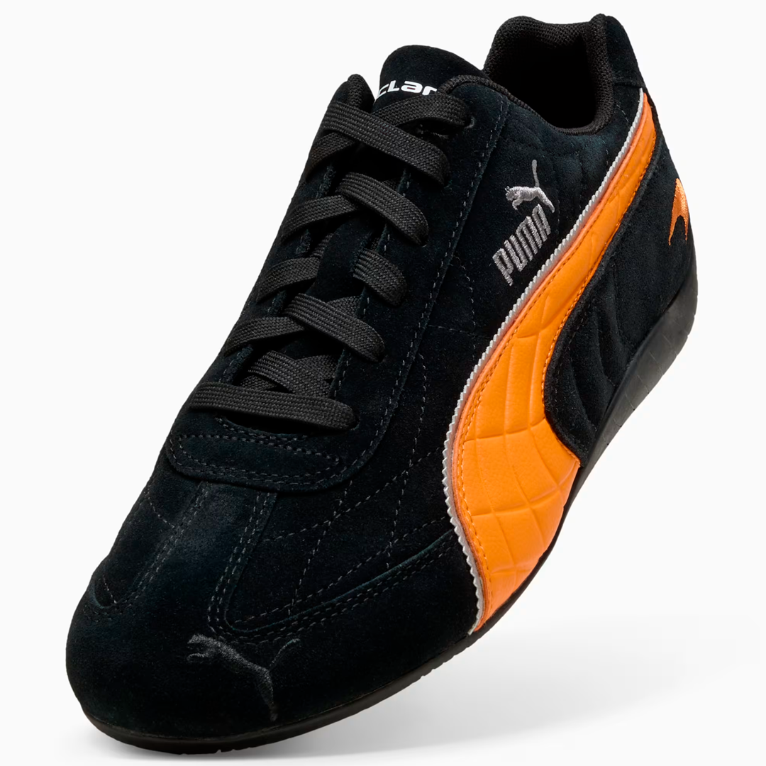 Branding Icónico: Logotipo de McLaren Racing destacado en la banda superior y el clásico felino de Puma en la plantilla.