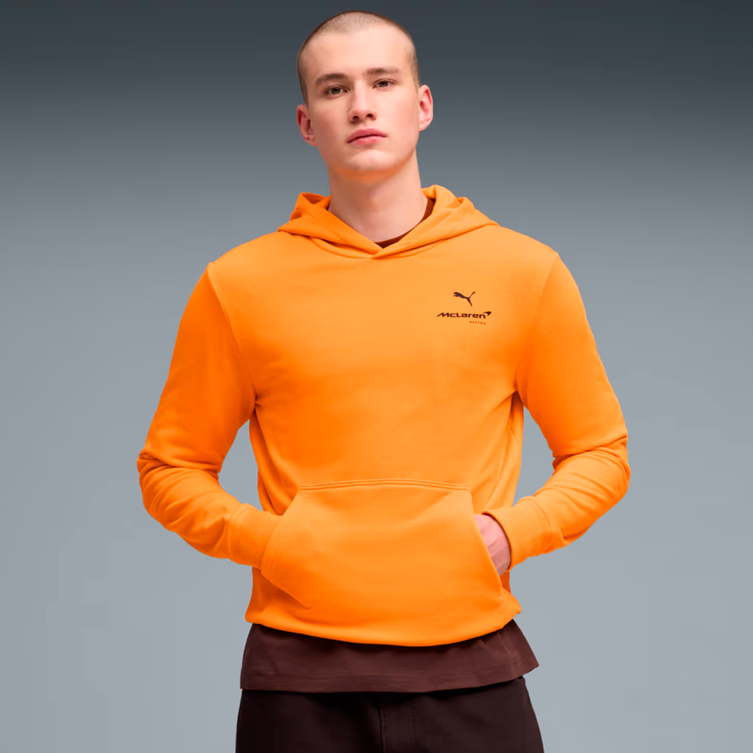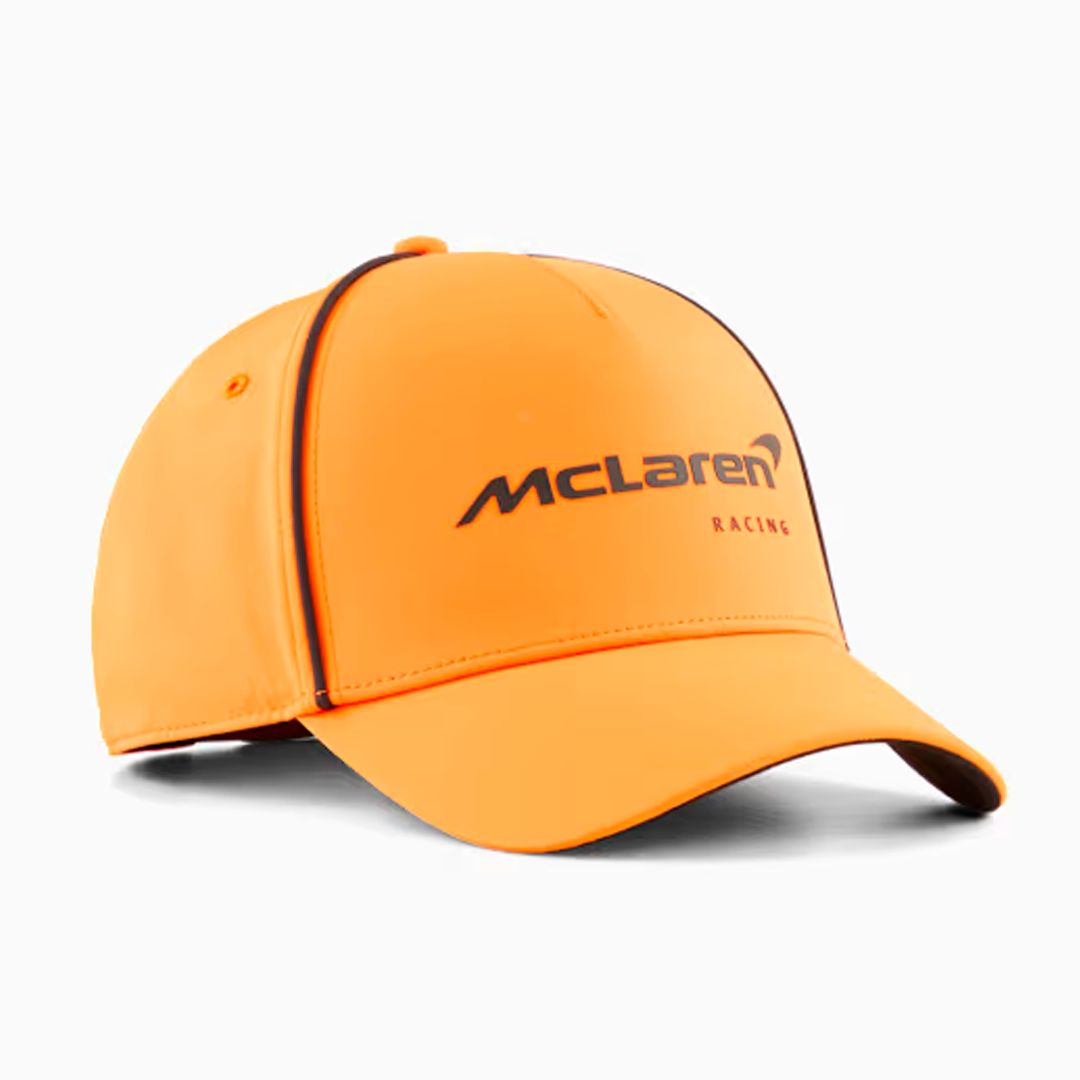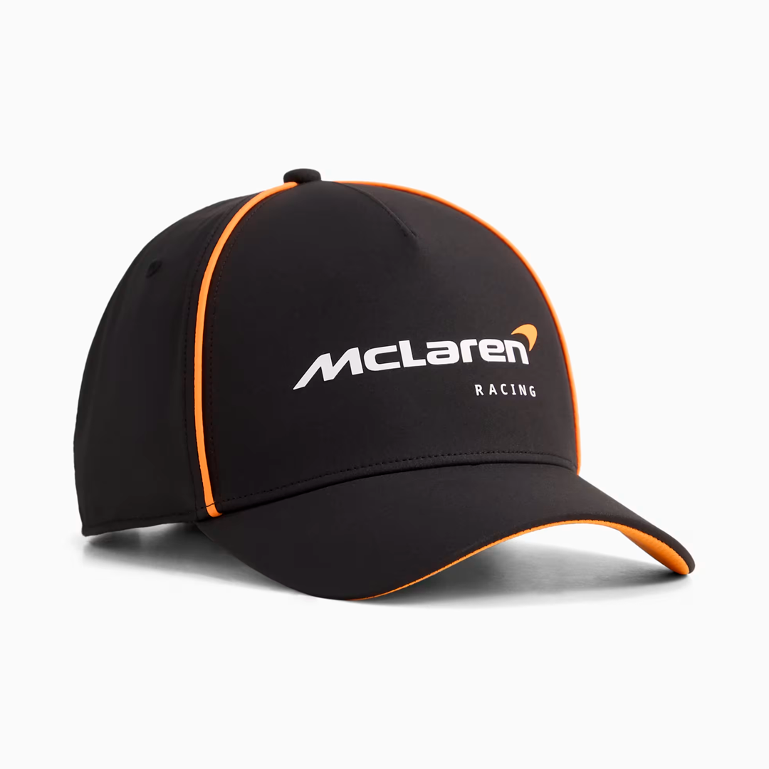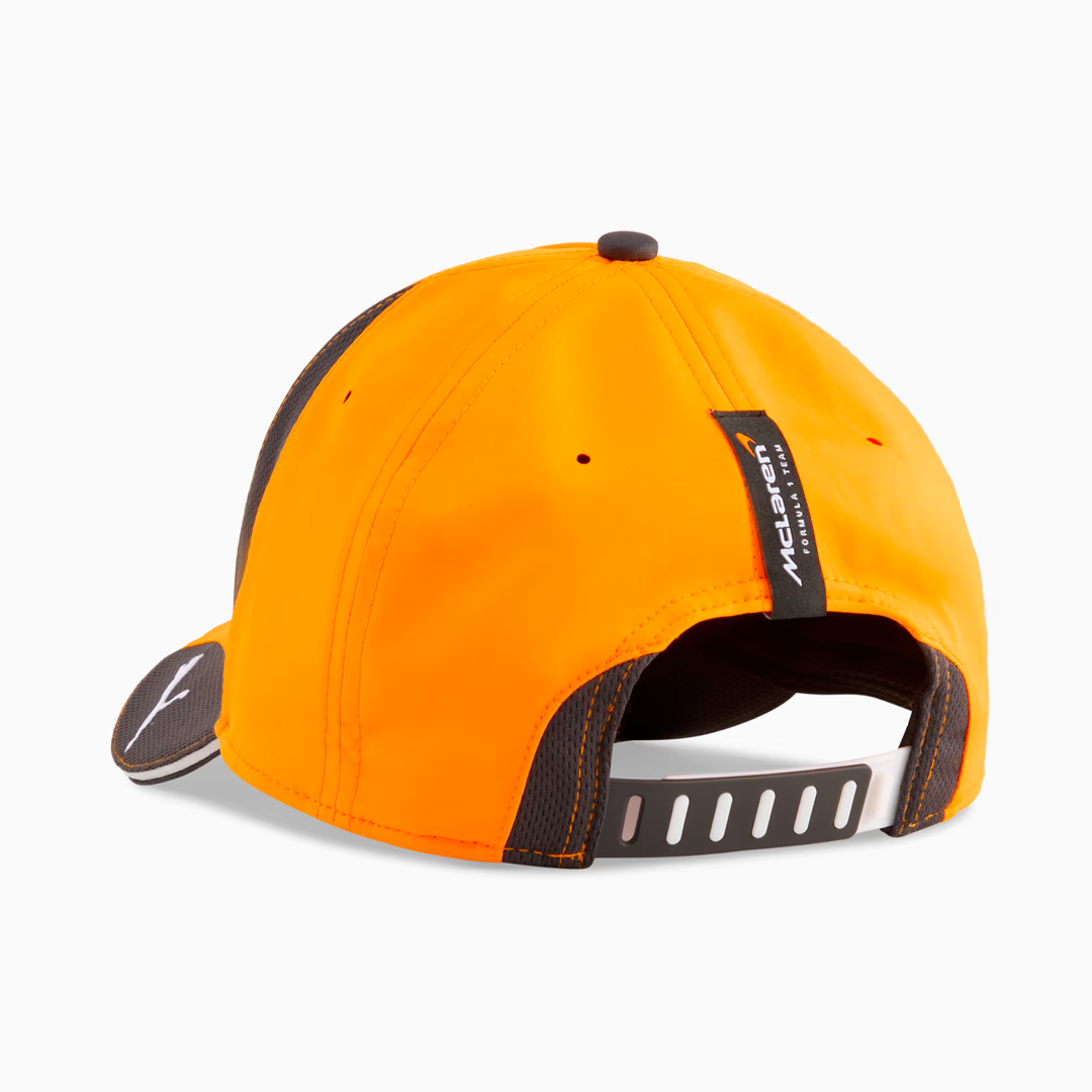 Branding Icónico: Logotipo de McLaren Racing destacado en la banda superior y el clásico felino de Puma en la plantilla.