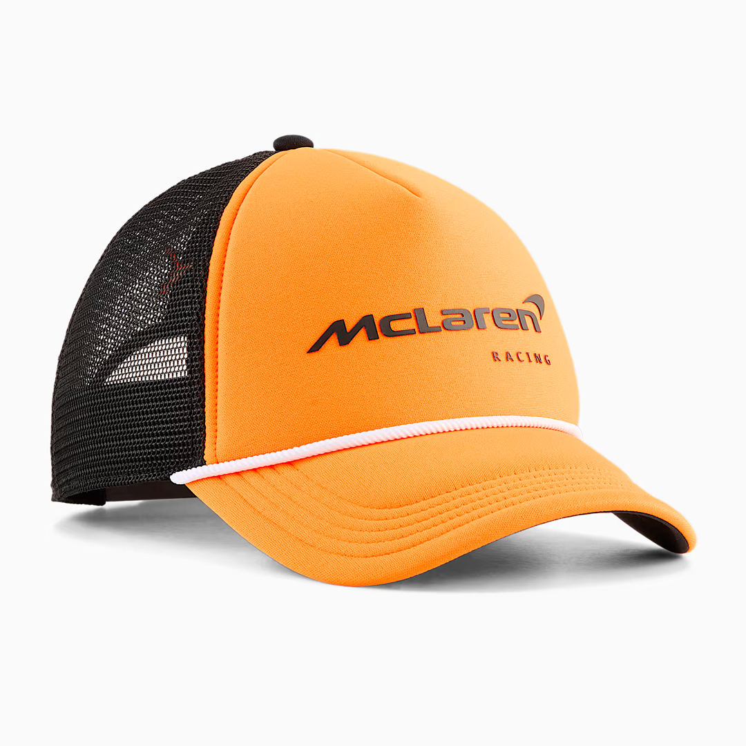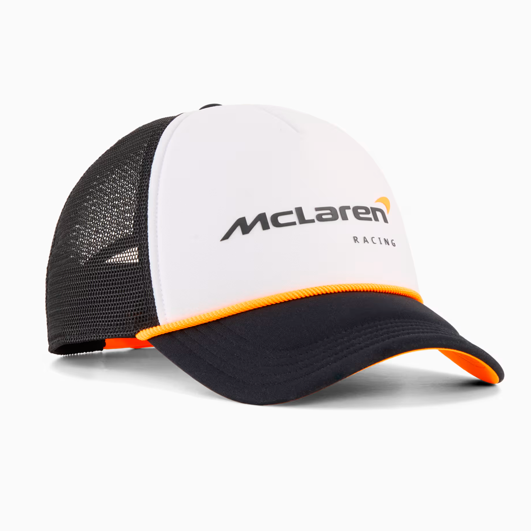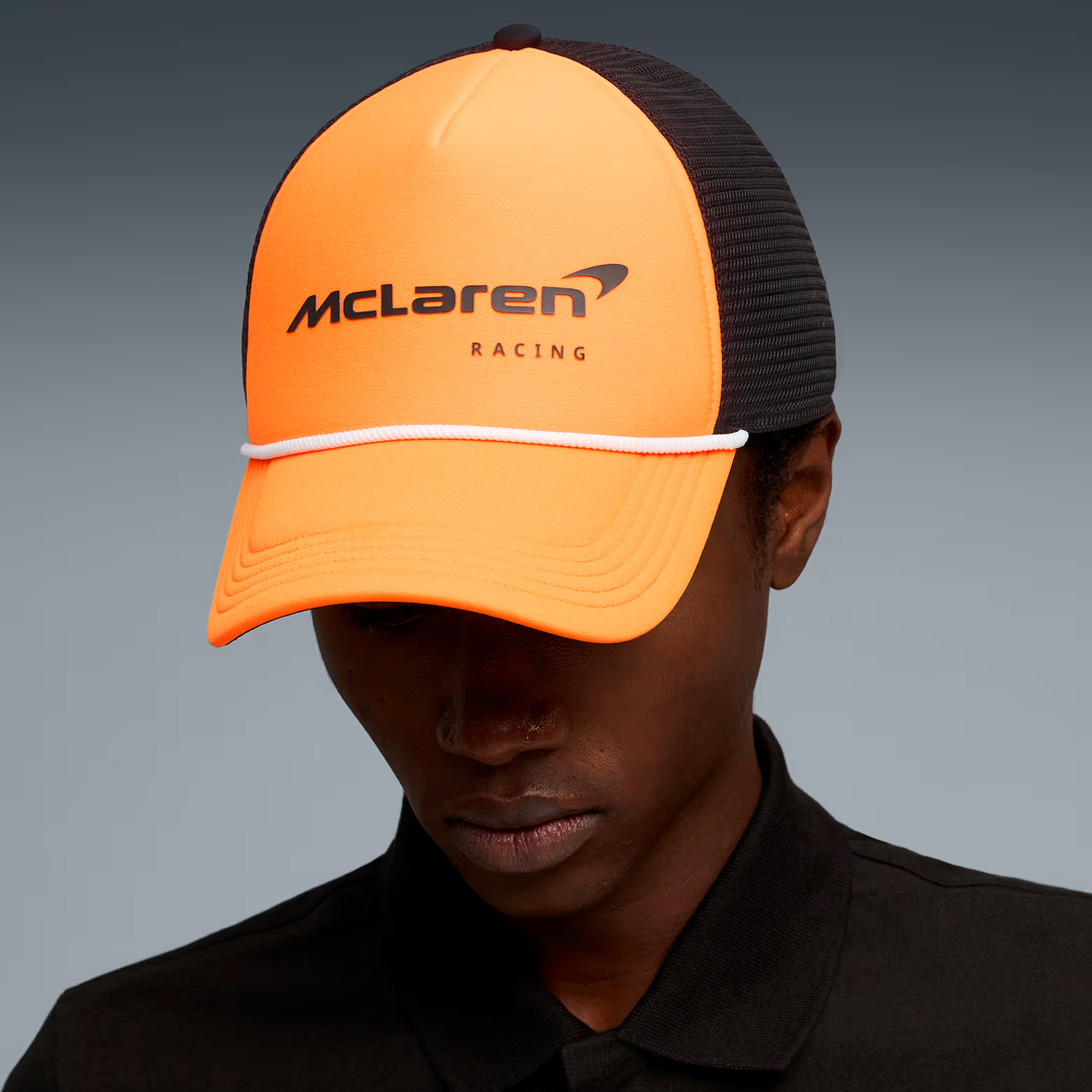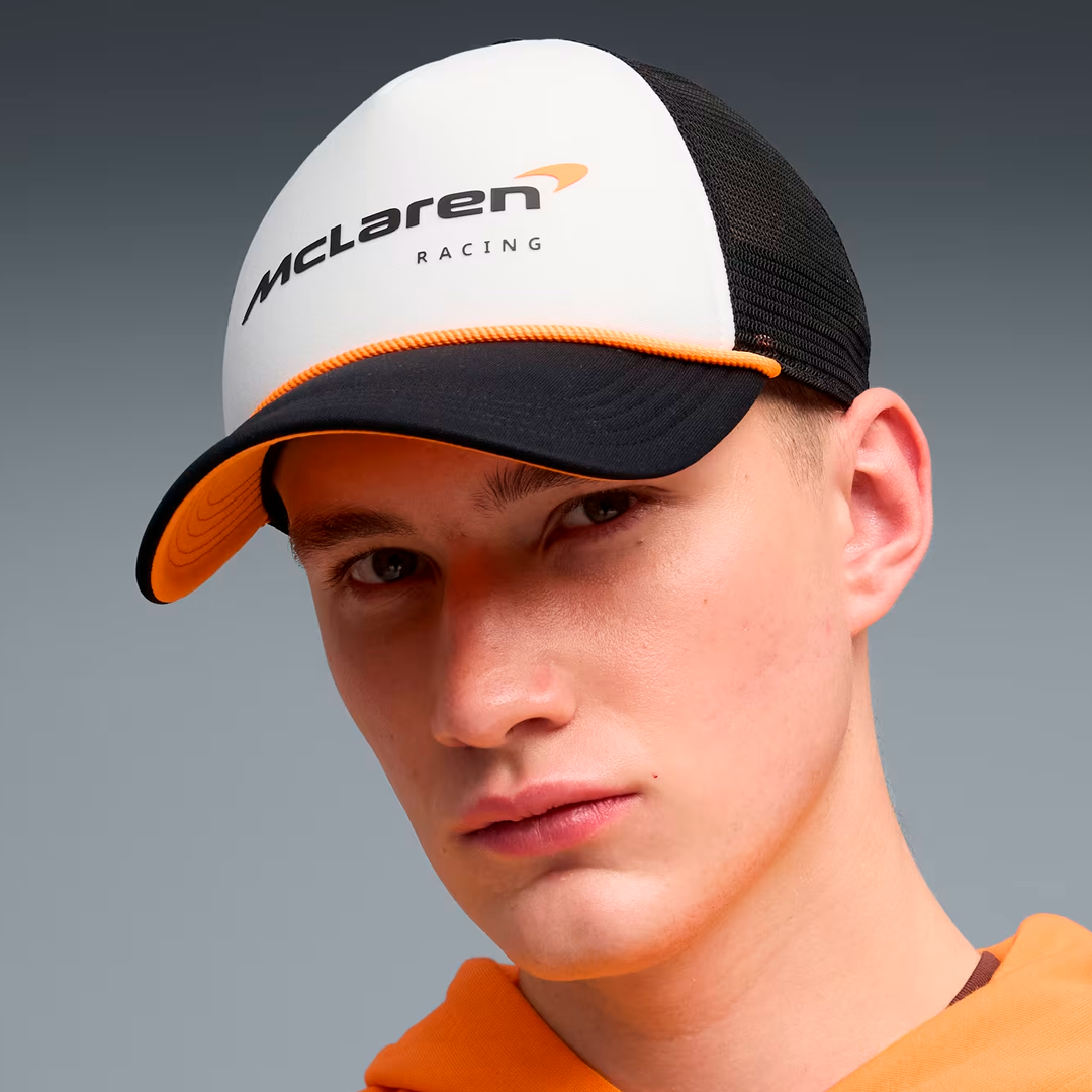 - Presenta el logotipo de McLaren Racing en el pecho y el logotipo de McLaren Speedmark en la espalda.